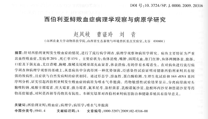 亞伯利亞鱘敗血癥病理學(xué)觀(guān)察與病原學(xué)研究