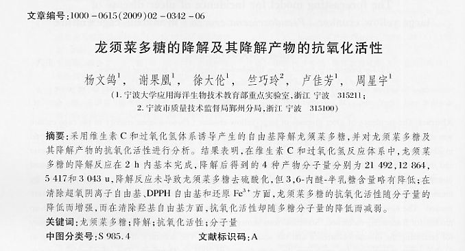 龍須菜多糖的降解及其降解產(chǎn)物的抗氧化活性