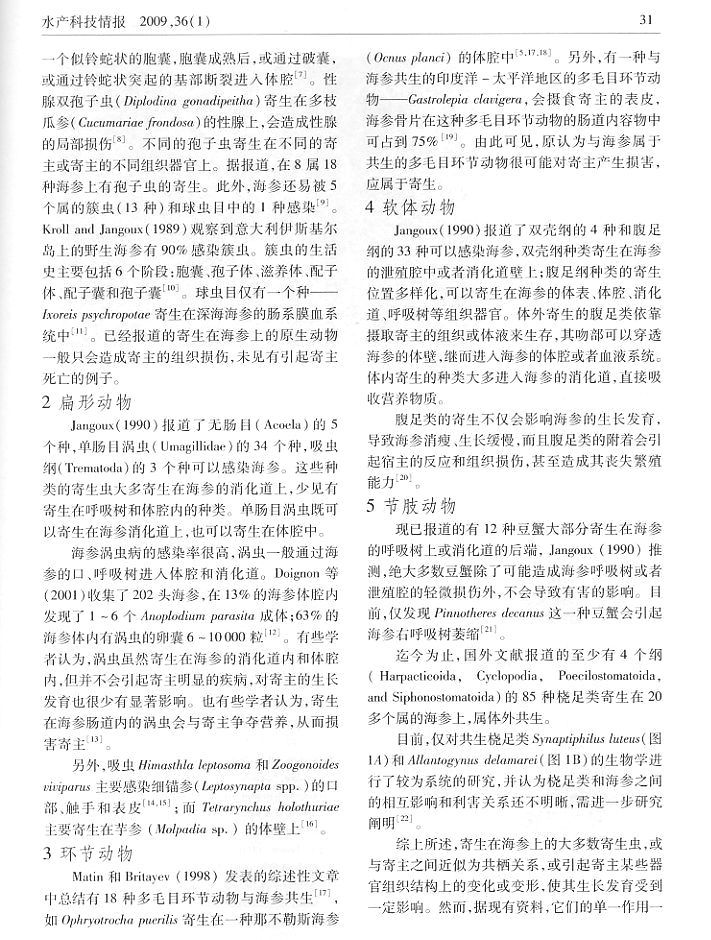 國(guó)外海參寄生蟲(chóng)病研究概況2