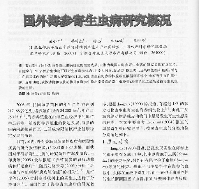國外海參寄生蟲病研究概況1