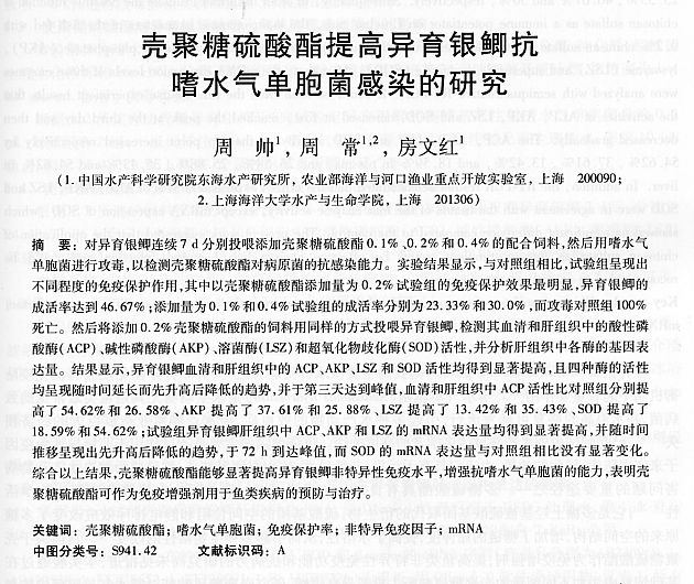 殼聚糖硫酸酯提高異育銀鯽抗嗜水氣單胞菌感染的研究
