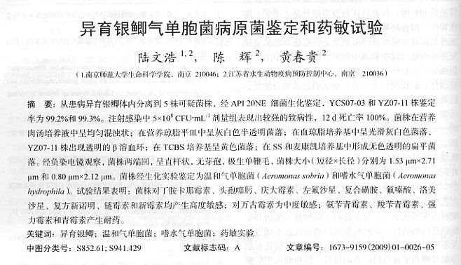 異育銀鯽氣單胞菌病原菌鑒定和藥敏實(shí)驗(yàn)