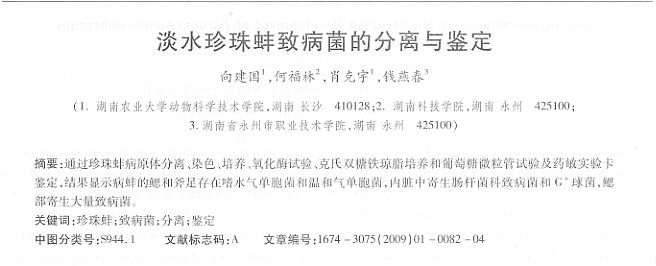 淡水珍珠蚌致病菌的分離與鑒定