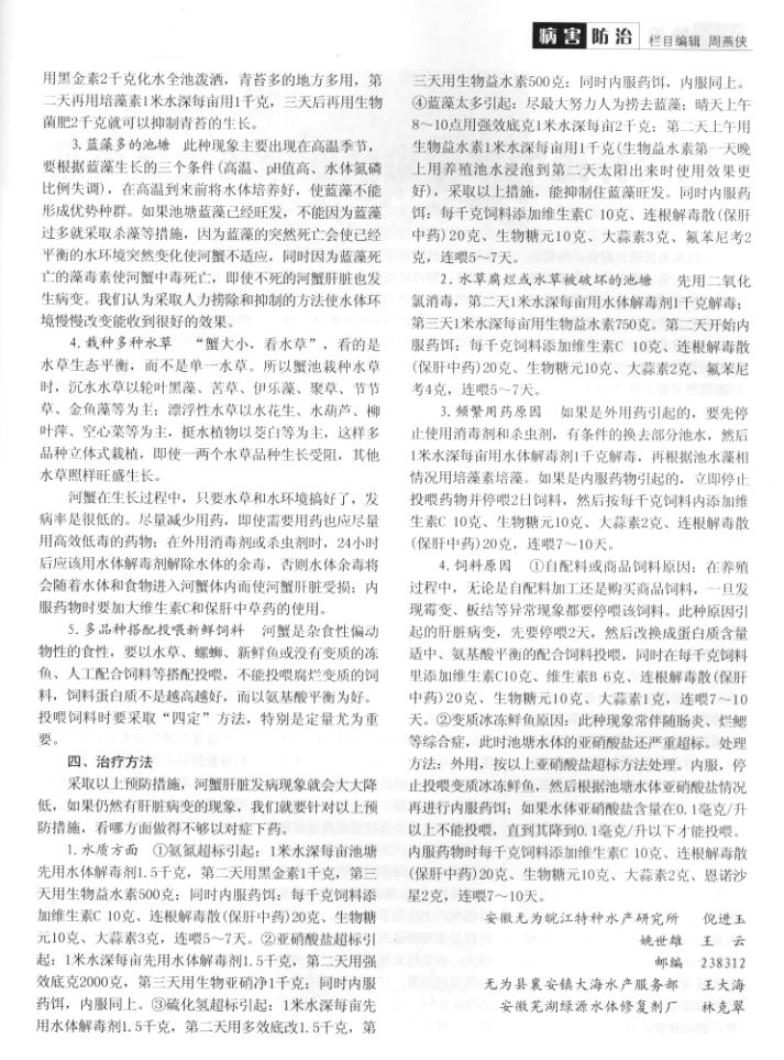 河蟹肝臟病變原因分析及防治對策3