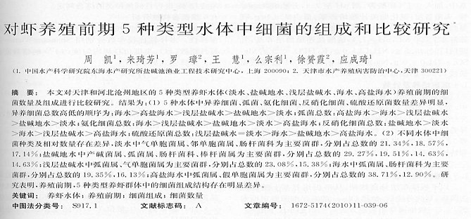 對(duì)蝦養(yǎng)殖前期5種類型水體中細(xì)菌的組成和比較研究