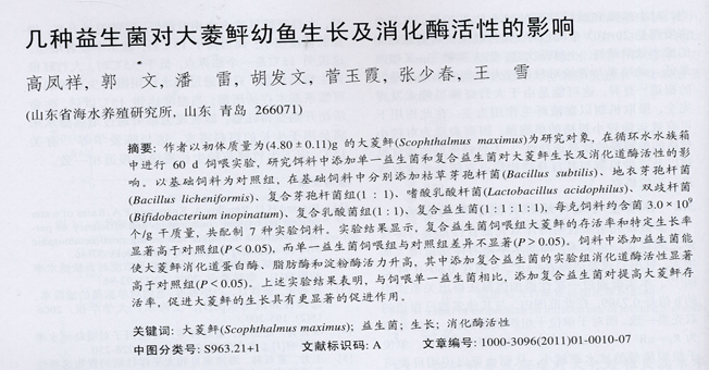 幾種益生菌對大菱鲆幼魚生長及消化酶活性的影響