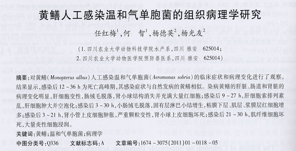 黃鱔人工感染溫和氣單胞的組織病理學(xué)研究