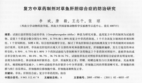 復(fù)方中草藥制劑對草魚肝膽綜合癥的防治研究