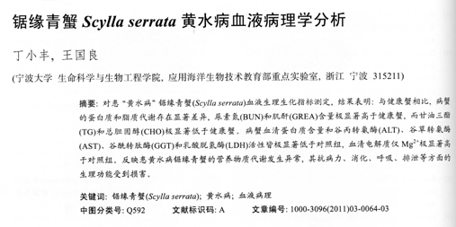 鋸緣青蟹Scyllaserrata黃水病血液病理學分析