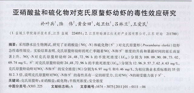 亞硝酸鹽和硫化物對克氏原螯蝦幼蝦的毒性效應(yīng)研究