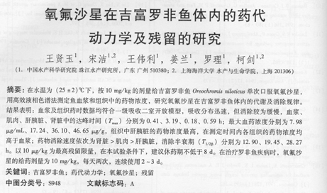 氧氟沙星在吉富羅非魚(yú)體內(nèi)的藥代動(dòng)力學(xué)及殘留的研究
