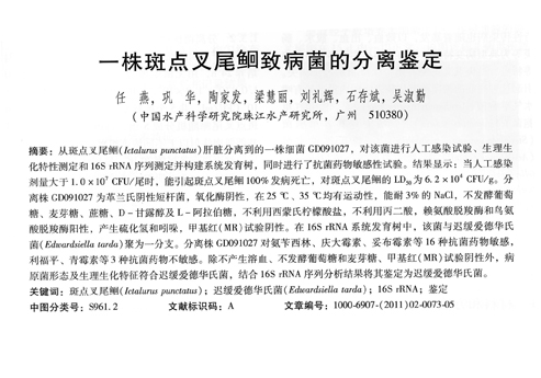 一株斑點叉尾鲴致病菌的分離鑒定