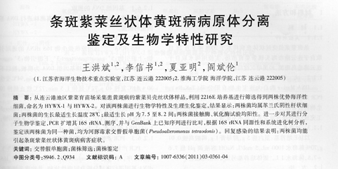 條斑紫菜絲狀體黃斑病病原體分離