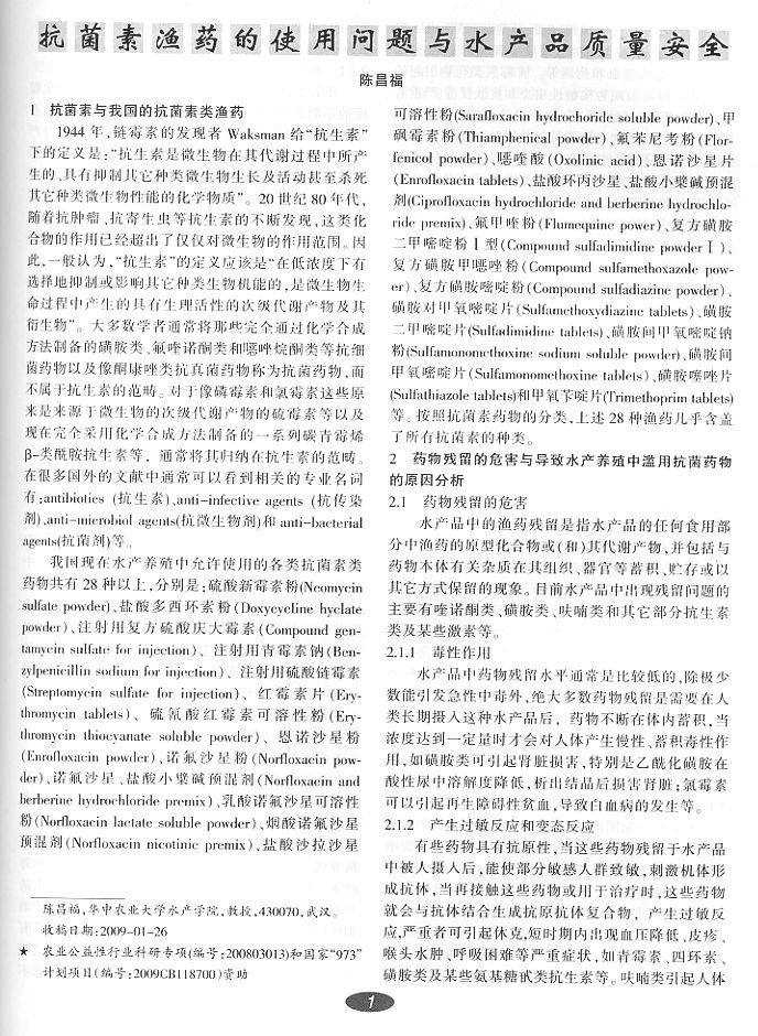 抗菌素漁藥的使用問(wèn)題與水產(chǎn)品質(zhì)量安全1