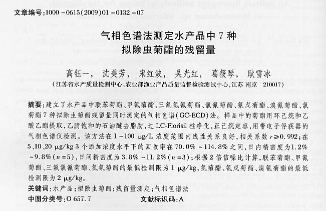 氣相色譜法測定水產(chǎn)品中7種擬除蟲菊酯的殘留量