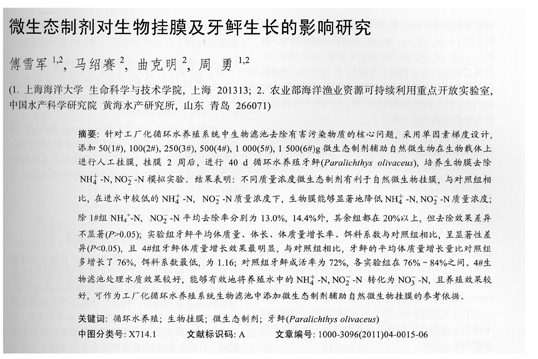 微生態(tài)制劑對生物掛膜及牙鲆生長的影響研究