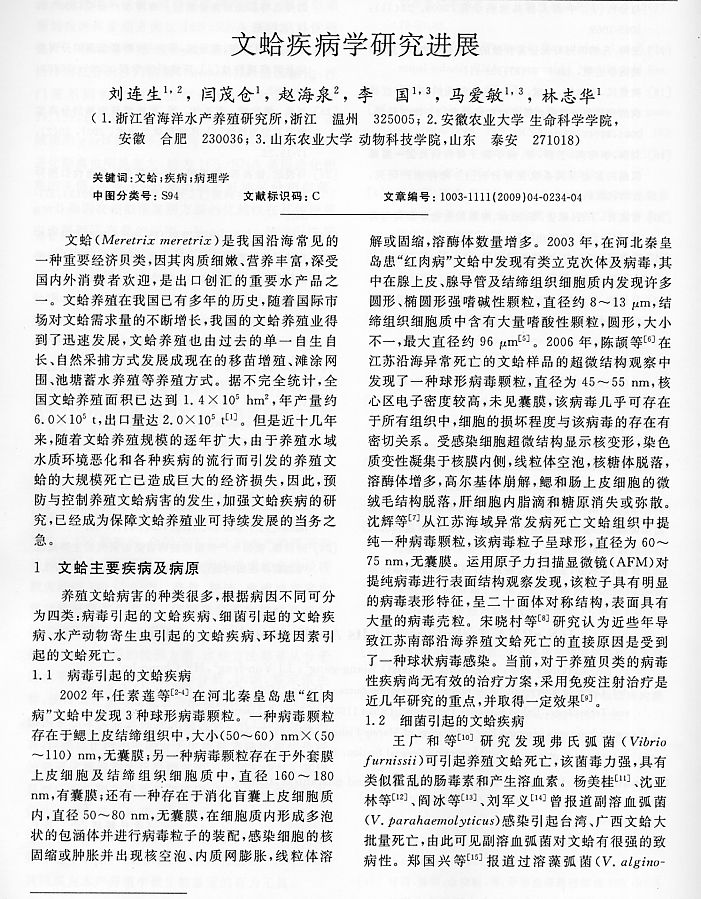 文蛤疾病學(xué)研究進(jìn)展1