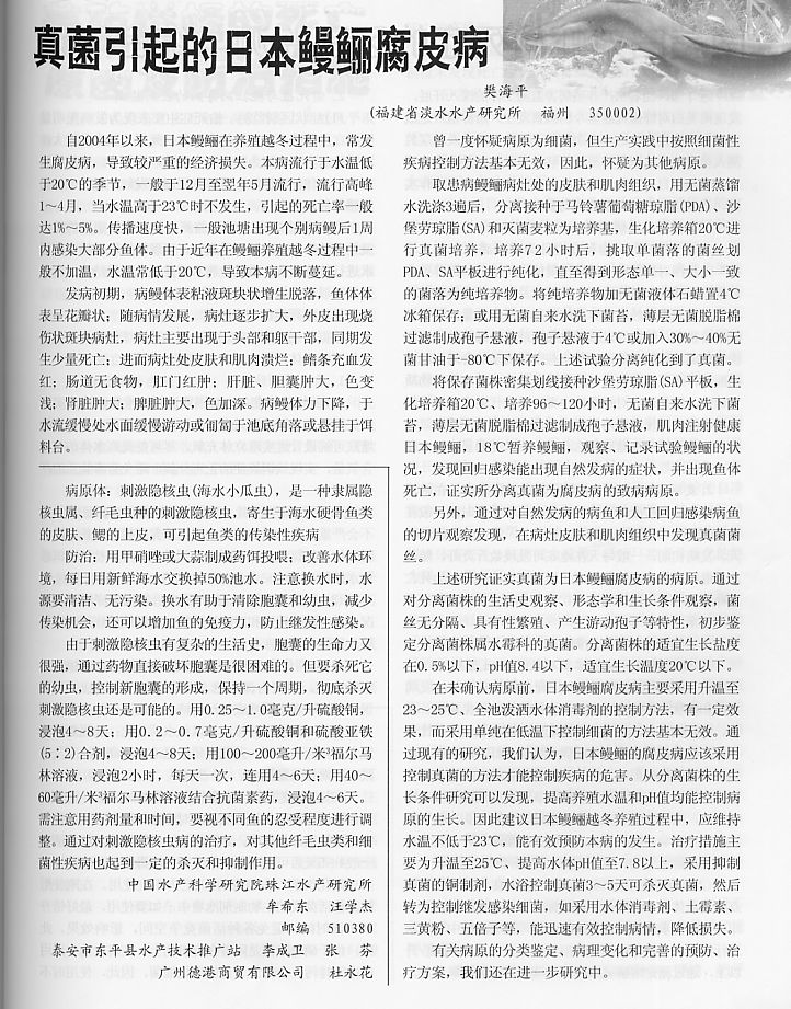 真菌引起的日本鰻鱺腐皮病