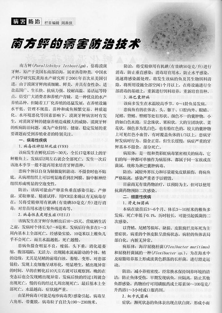 南方鲆的病害防治技術1