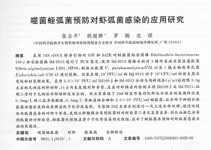 噬菌蛭弧菌預(yù)防對(duì)蝦弧菌感染的應(yīng)用研究