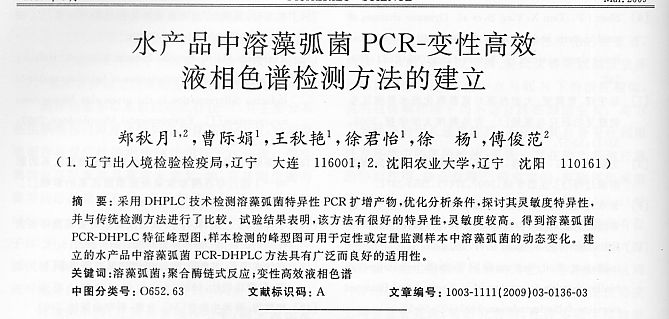 水產(chǎn)品溶藻弧菌PCR-變性高效液相色譜檢測(cè)方法的建立