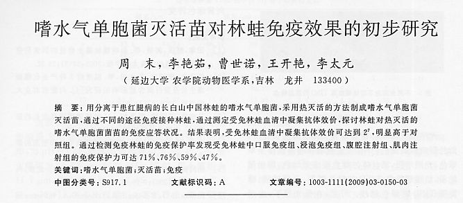 嗜水氣單胞菌滅活苗對林蛙免疫效果的初步研究